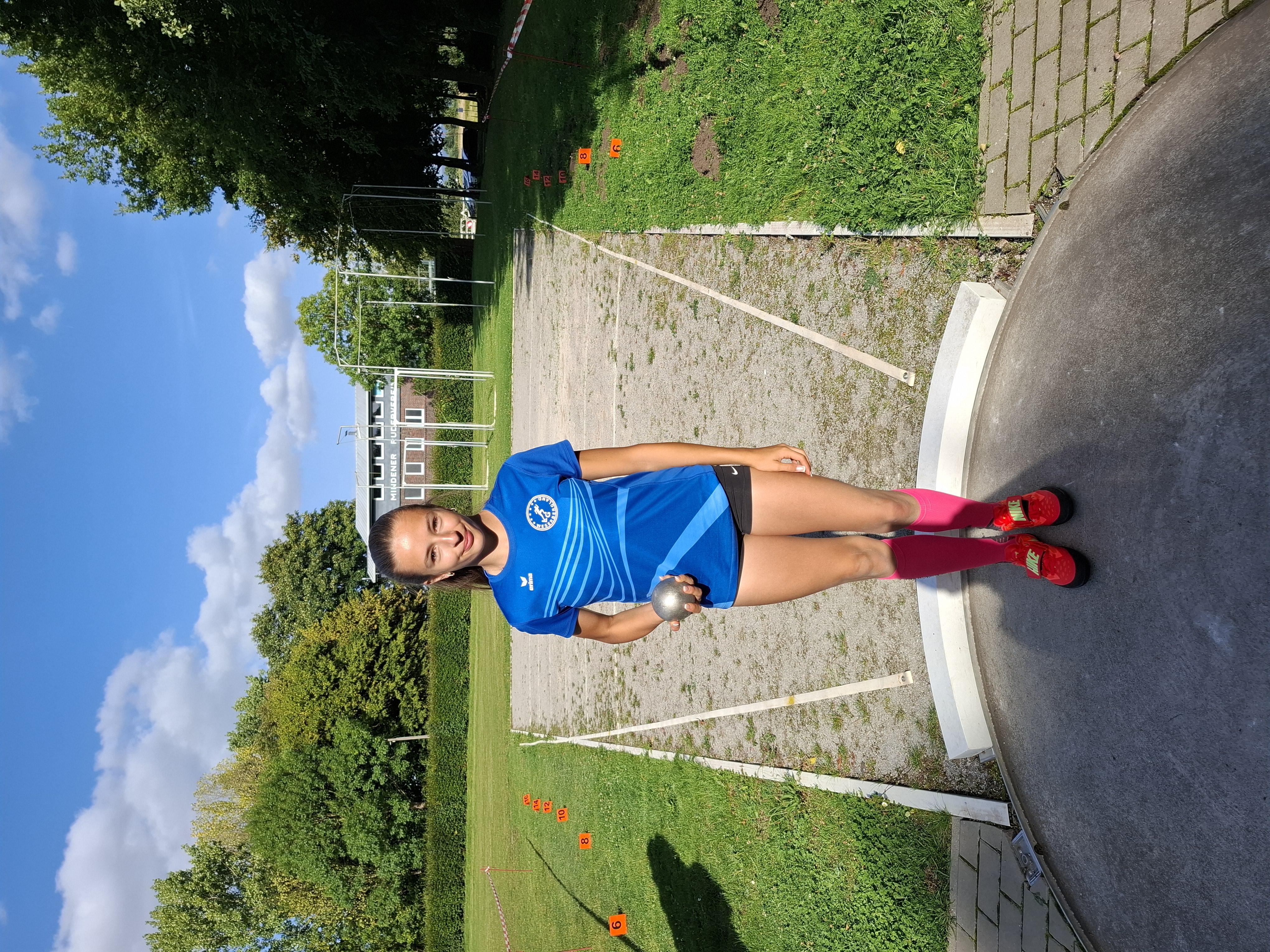 Nach kurzer Pause ging es zum Kugelstoßen. Hier hatte sie zuletzt sogar im Wettkampf über 10m gestoßen. Die Mädels hatten nur 2x die Gelegenheit sich einzustoßen.