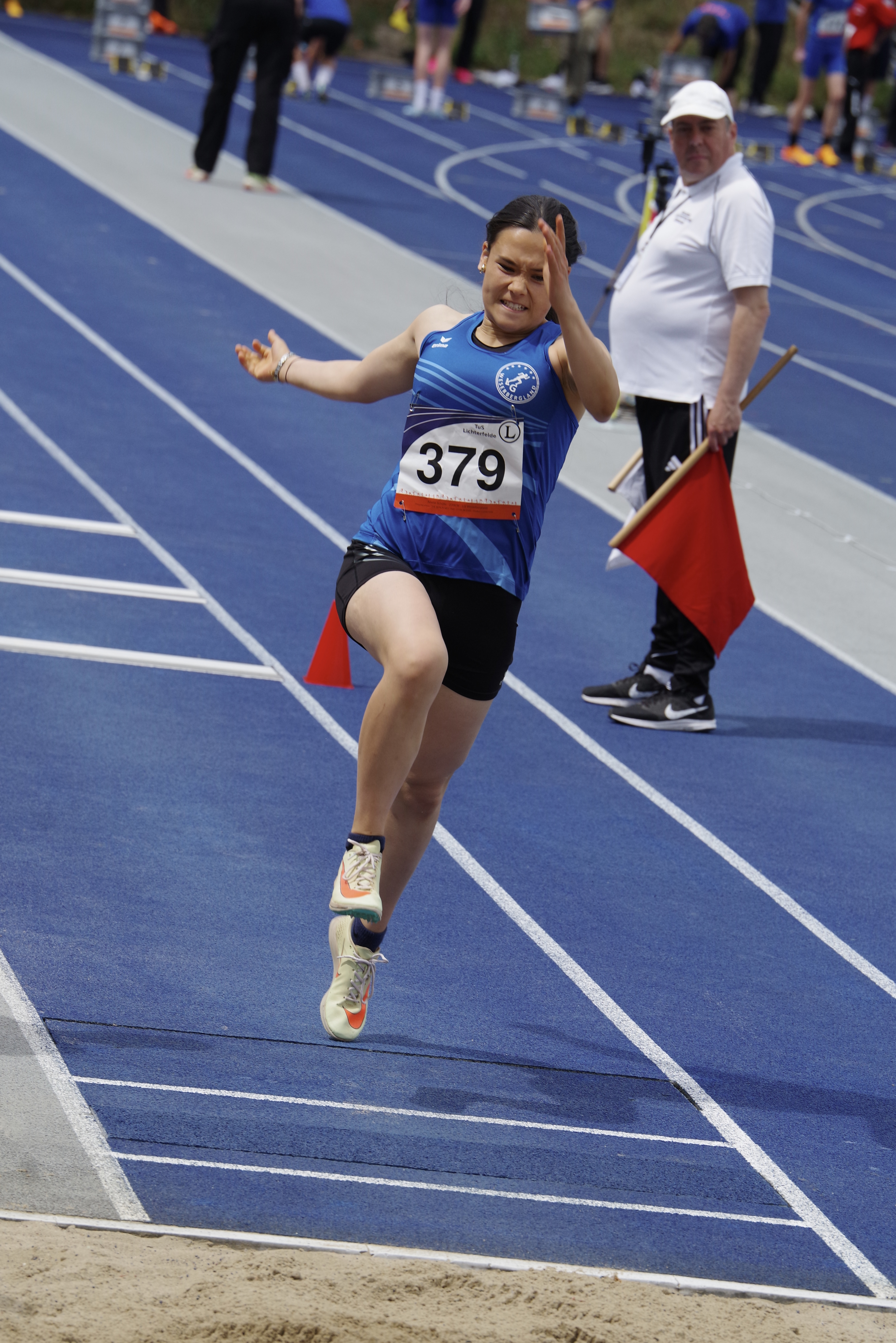 Der anschl Weitsprung läuft z. Z. nicht so richtig rund. Nach starken Sprüngen zu Saisonbeginn, hat sich hier in der Flugphase ein Fehler eingeschlichen, den wir z. Z. nicht in den Griff bekommen.